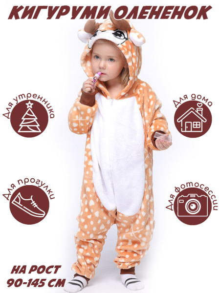 Кигуруми Олененок для детей, Девочки, На любой сезон, размер 110