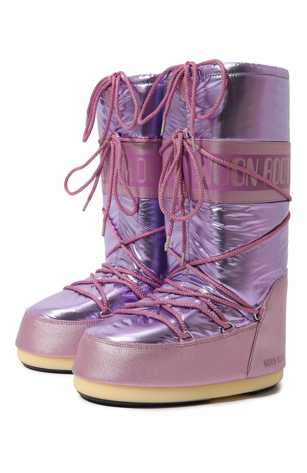 Женские розовые комбинированные сапоги icon MOON BOOT купить в интернет